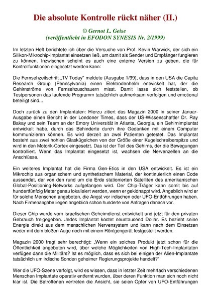 Die absolute Kontrolle rückt näher (II)