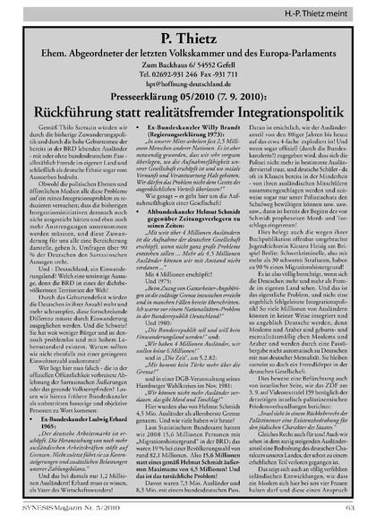 Rückführung statt realitätsfremder Integrationspolitik (Presseerklärung)